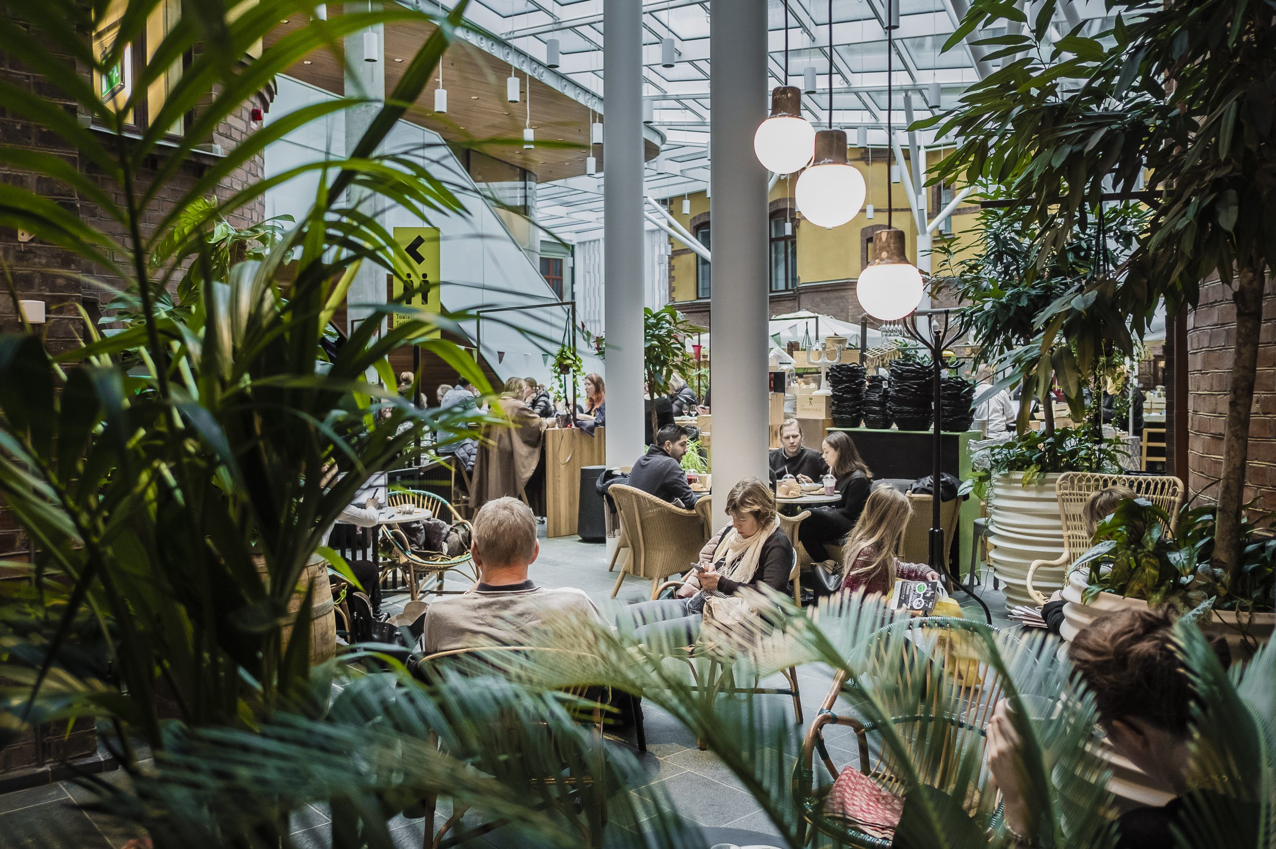 En snabb kopp kaffe, en långsam fika med härliga bakverk eller en matig smörgås. Från öppning till stängning kan du alltid kika förbi på vårt härliga inomhustorg.