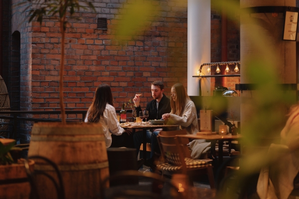 Ät lunch och middag på vårt mysiga inomhustorg. Matiga sallader, mackor, stenugnsbakade pizzor och soppa serveras alla dagar i veckan.